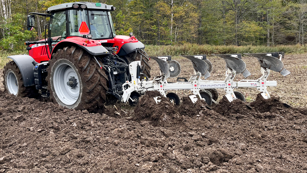 反転する向きの異なるボトムを上下に装備しているプラウです。ほ場の端まで来たときにプラウを回転させることで、往復での作業が可能になります。