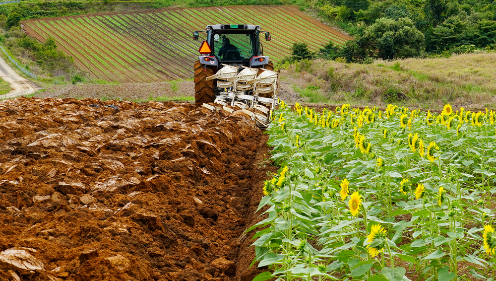 土壌を反転させ、作物の残渣や雑草などを土中に埋め込んで腐食させます。