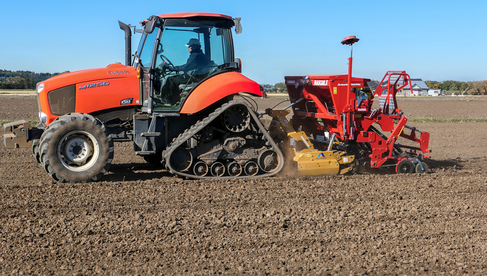 ドリルシーダーは10km/時程度での高精度条播が可能で、種子の繰り出し精度が高く調整も容易です。